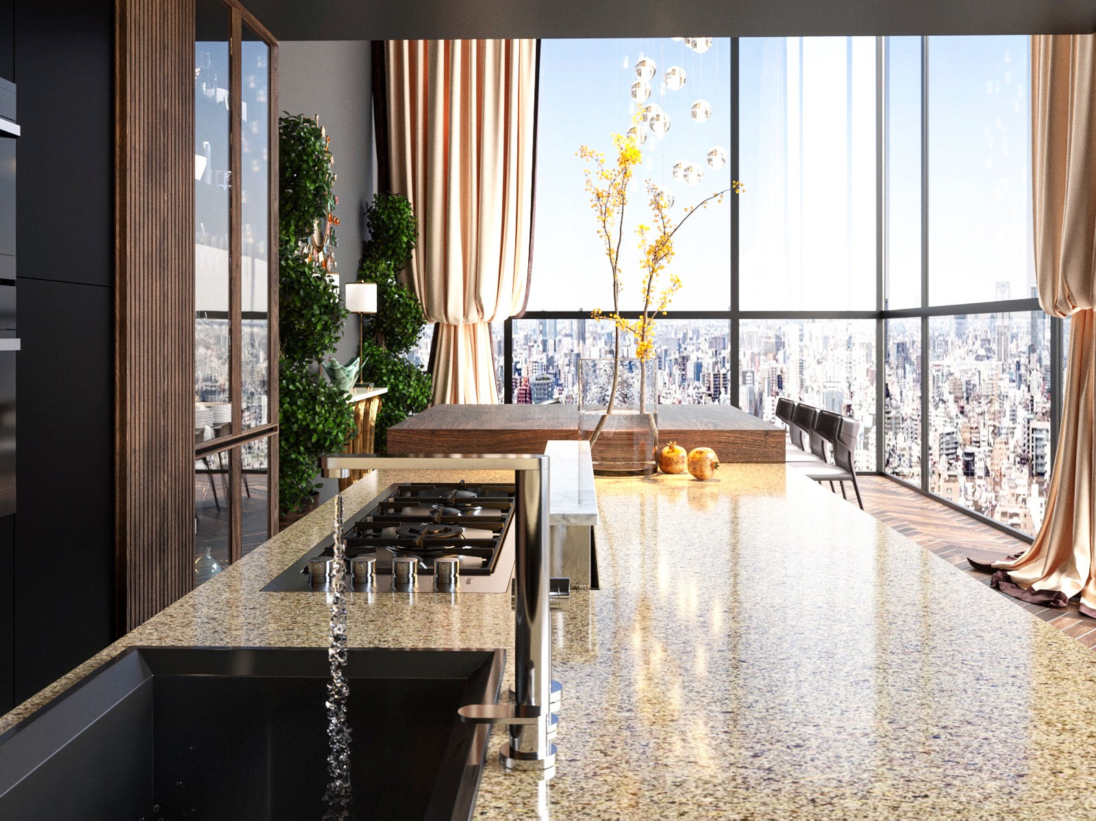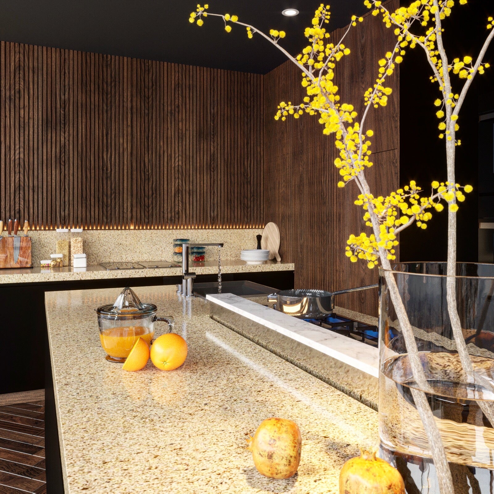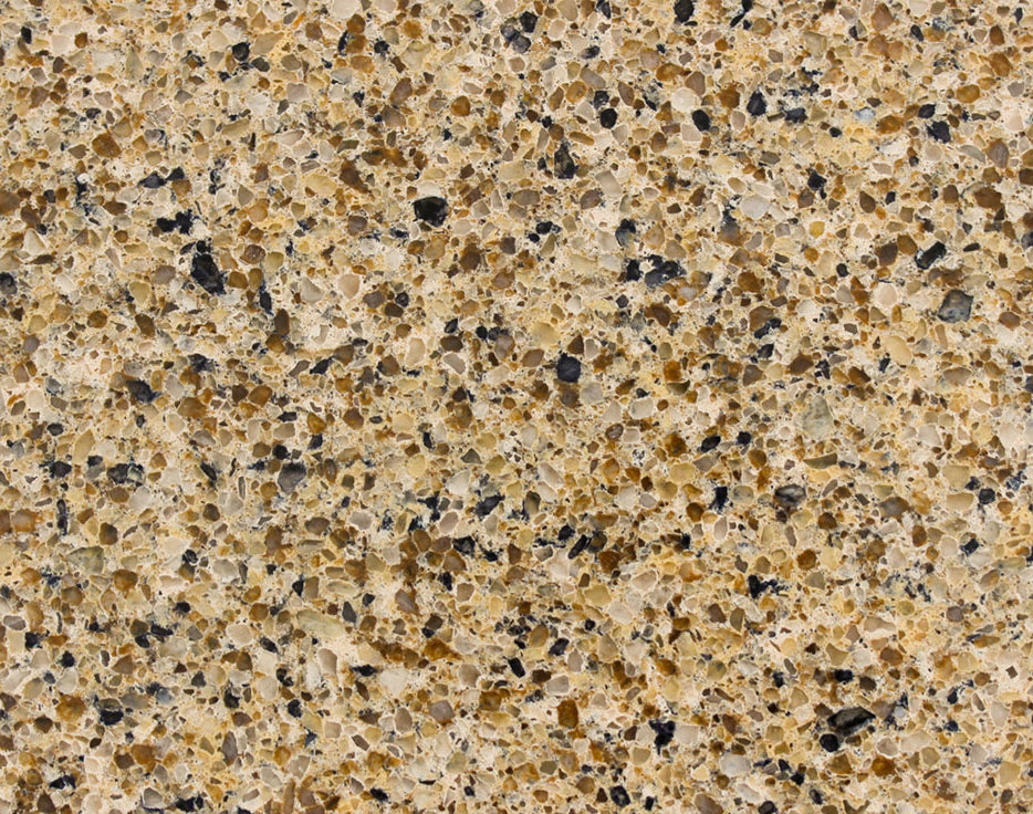 Vicostone Canary simulates the traditional beauty of granite stone with varying-sized quartz aggregates and warm colors.