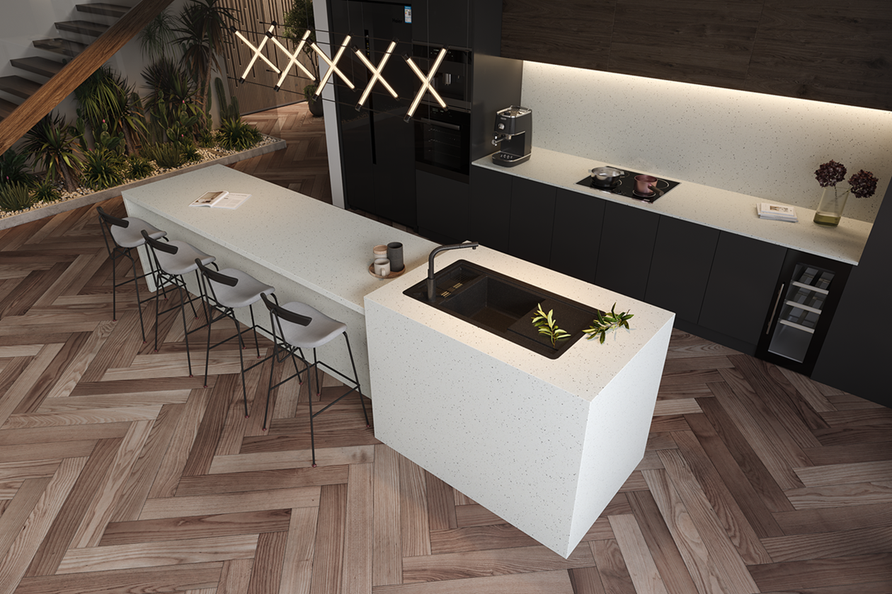 Request Free Quote Schedule Showroom Visit 📞 Call (201) 803-5388Vicostone Crystal Pepper features large quartz particles that look like glass fragments. The transparent particles provide a depth that adds a unique element to its surrounding aesthetic details.