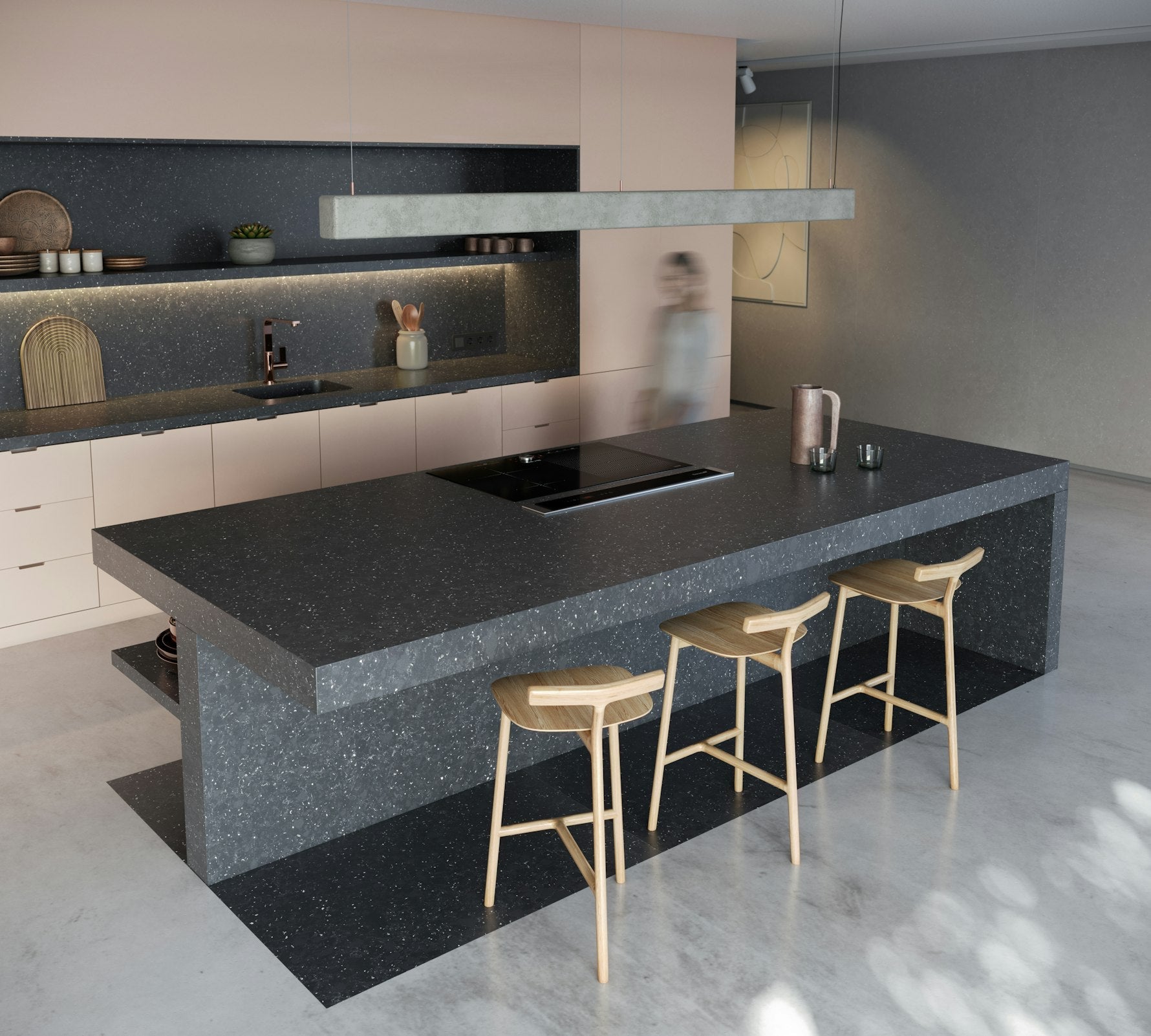Request Free Quote Schedule Showroom Visit 📞 Call (201) 803-5388A mesmerizing yet elegant and antracite background with recycled PET scales scattered across the surface resembles the night sky or a geological specimen.