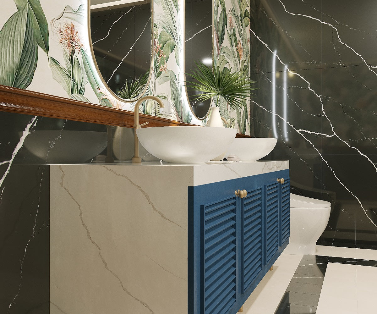 Request Free Quote Schedule Showroom Visit 📞 Call (201) 803-5388From Vicostone’s Thunder Series, Nero Marquina’s white lightning bolt veins pop on the mysterious almost-deep-black background.