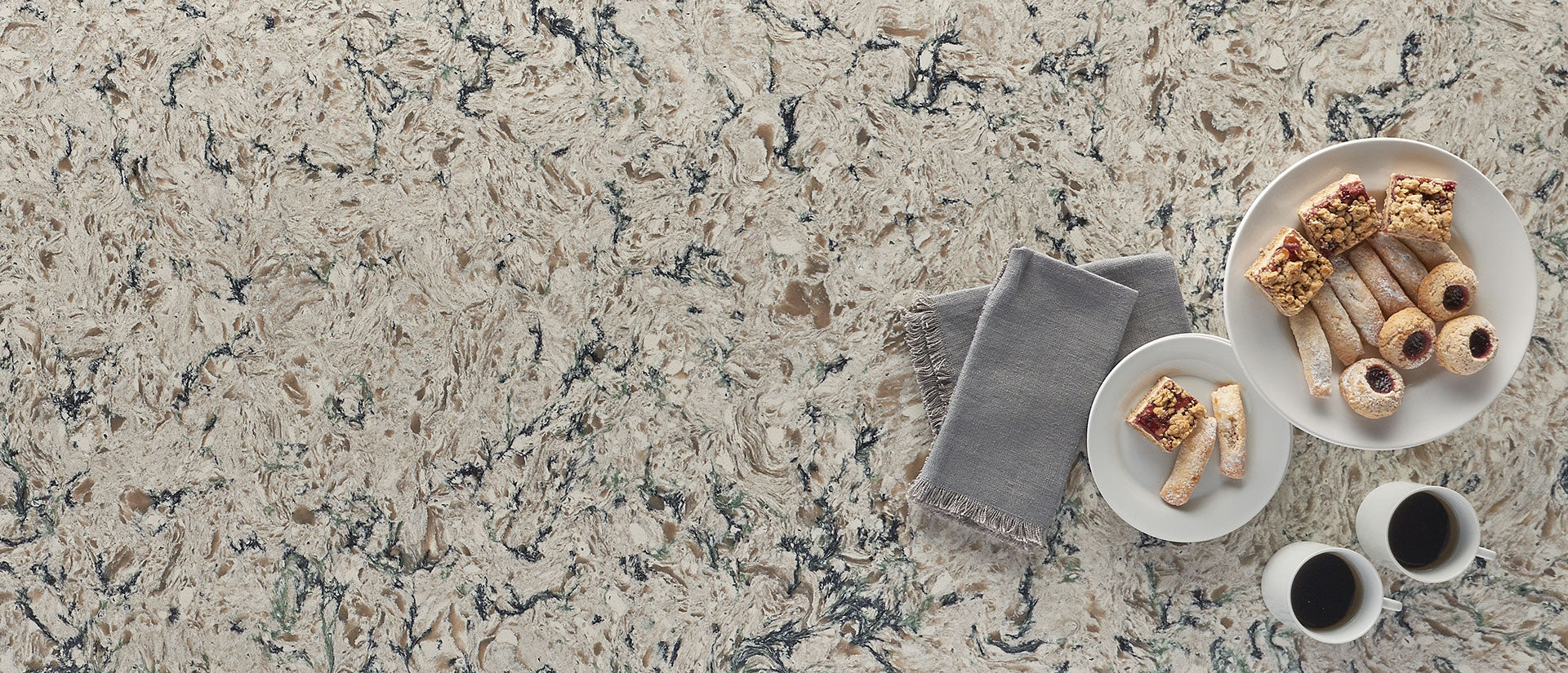 Request Free Quote Schedule Showroom Visit 📞 Call (201) 803-5388Pacific Salt Quartz is reminiscent of a high movement natural stone, featuring dark gray and tan veins and swirls contrasting with a soft creamy background. Beach cottage to urban loft, this stunning quartz is highly prized for its design versatility. Use it to create durable beige quartz countertops, kitchen islands, accent walls, and more in residential and commercial settings...the only limit is your imagination! Available in 2 cm and 3 cm slabs and prefabricated options for design and installation flexibility. It coordinates beautifully with a wide range of floor tiles and wall tiles in our inventory.