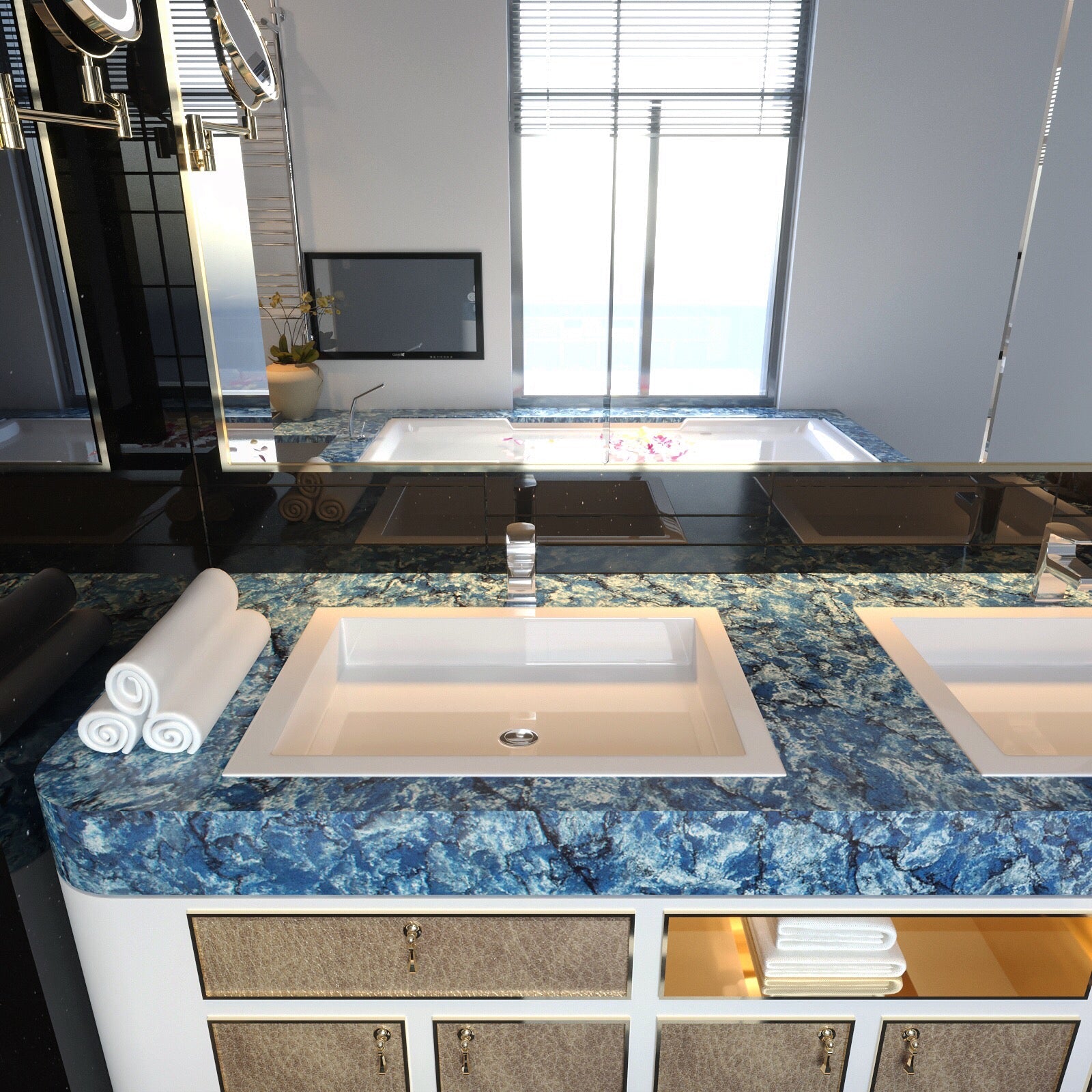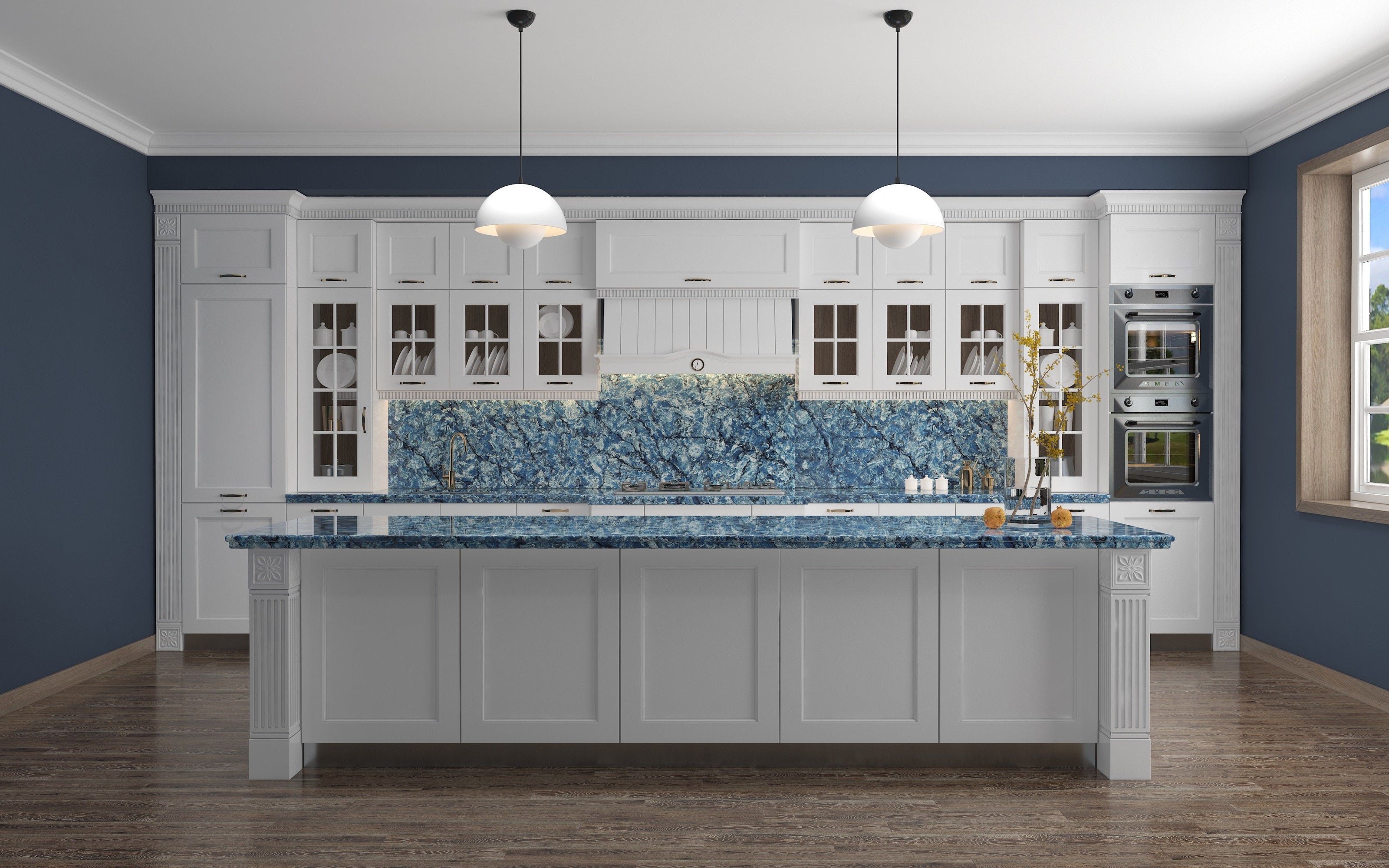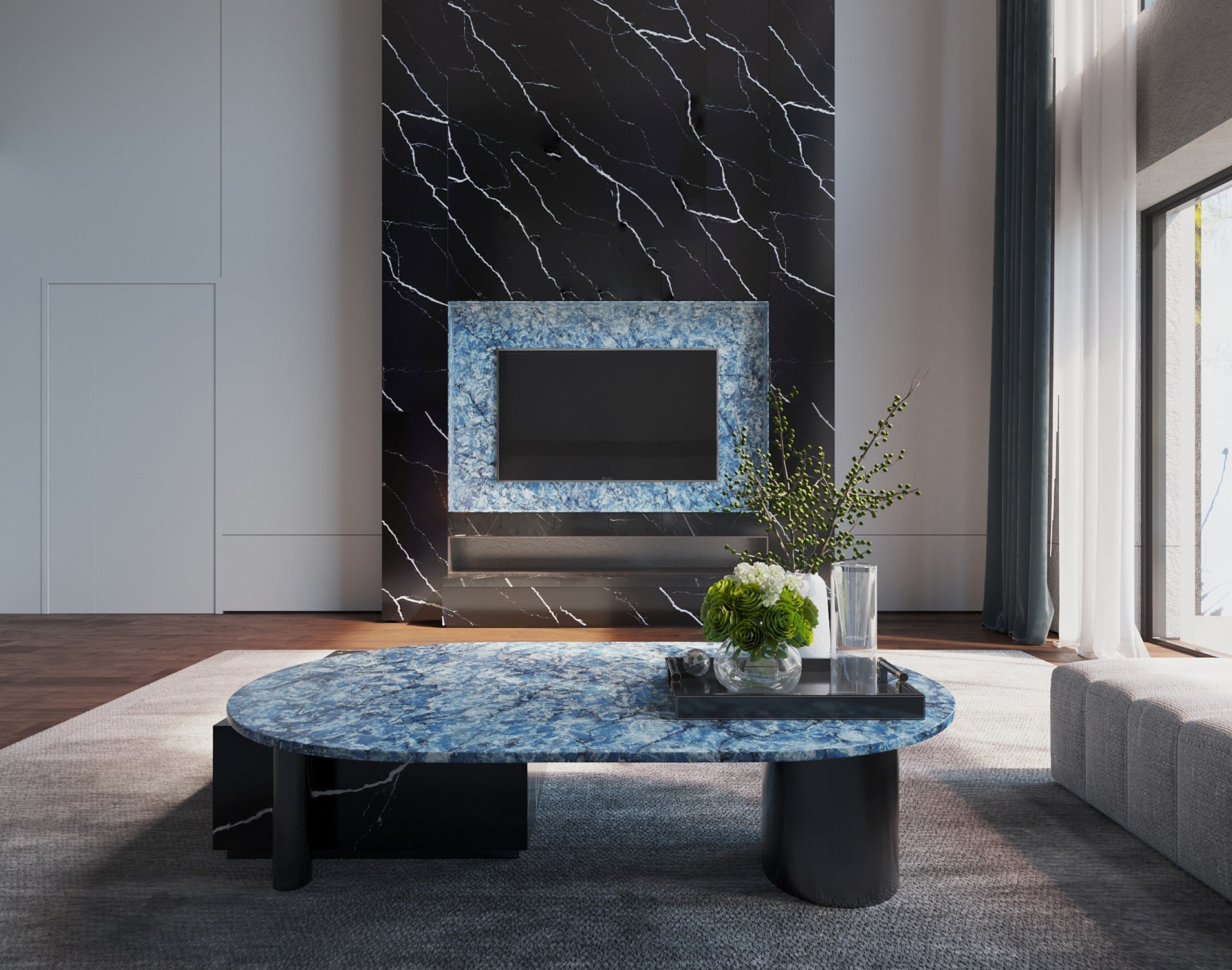 Request Free Quote Schedule Showroom Visit 📞 Call (201) 803-5388From Vicostone’s Thunder Series, Thunder Blue dark veins pop on an ocean-blue granite-look background.