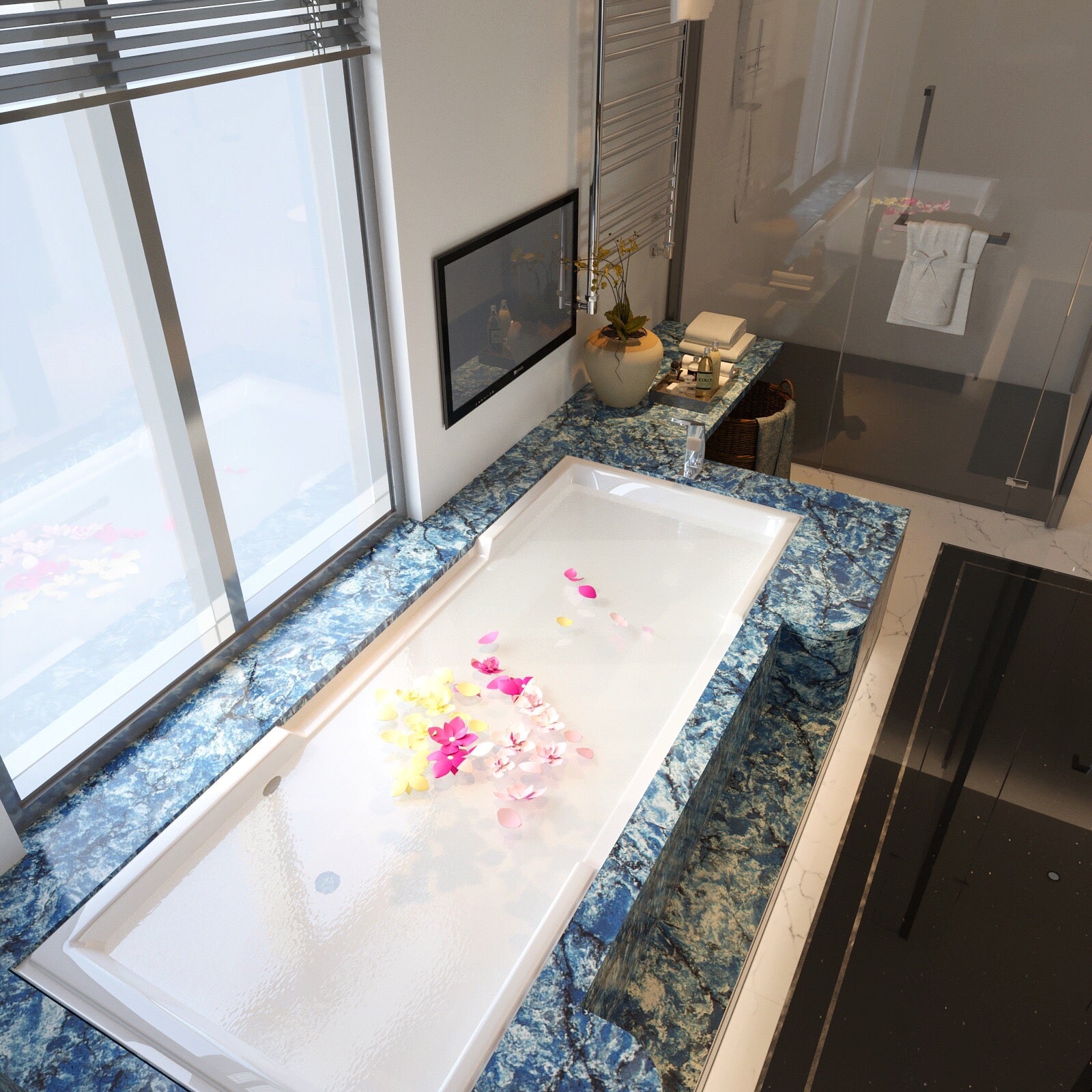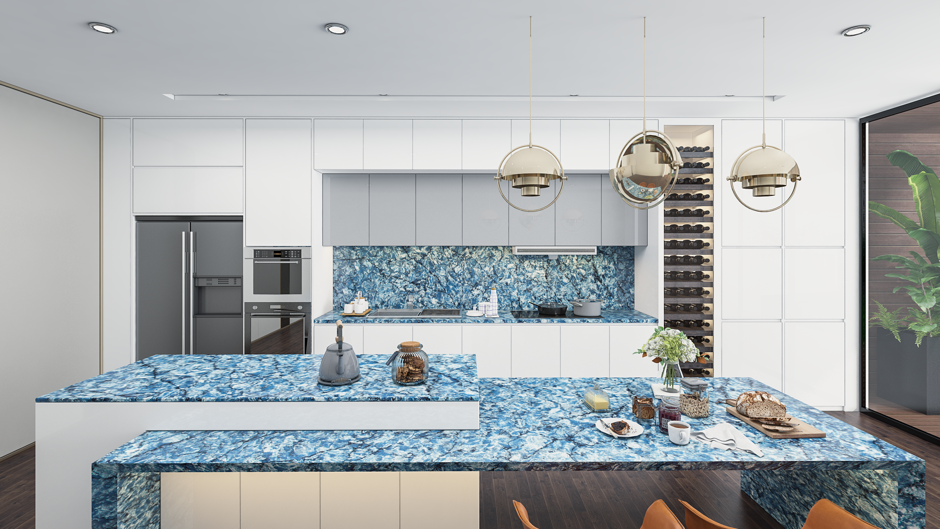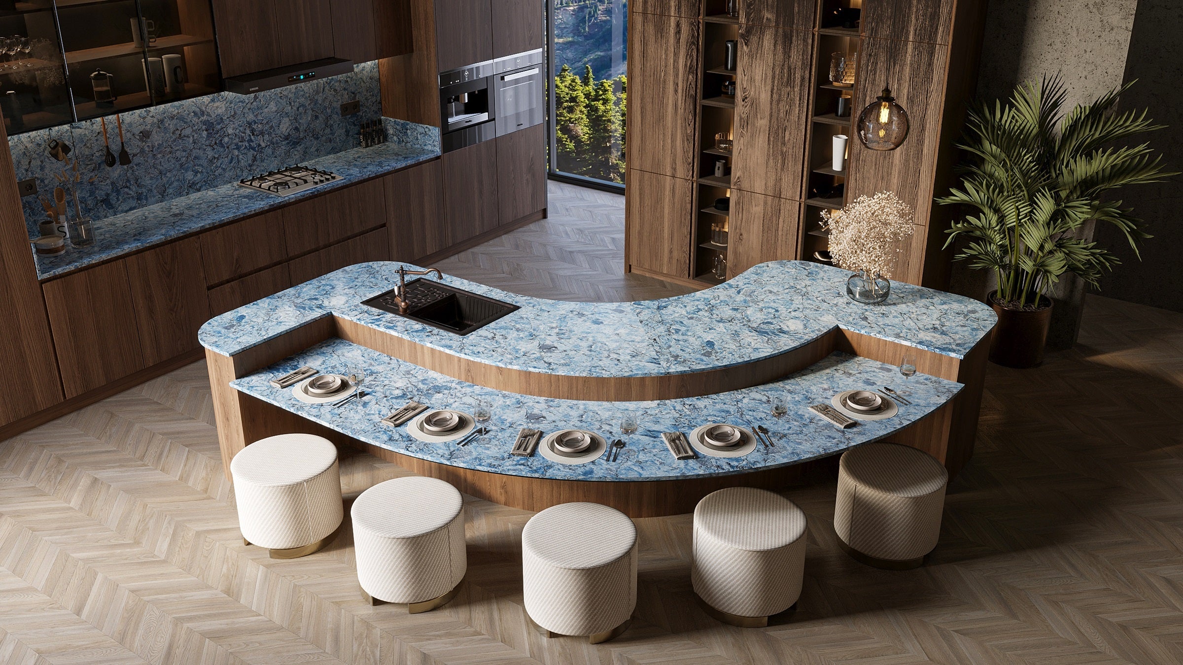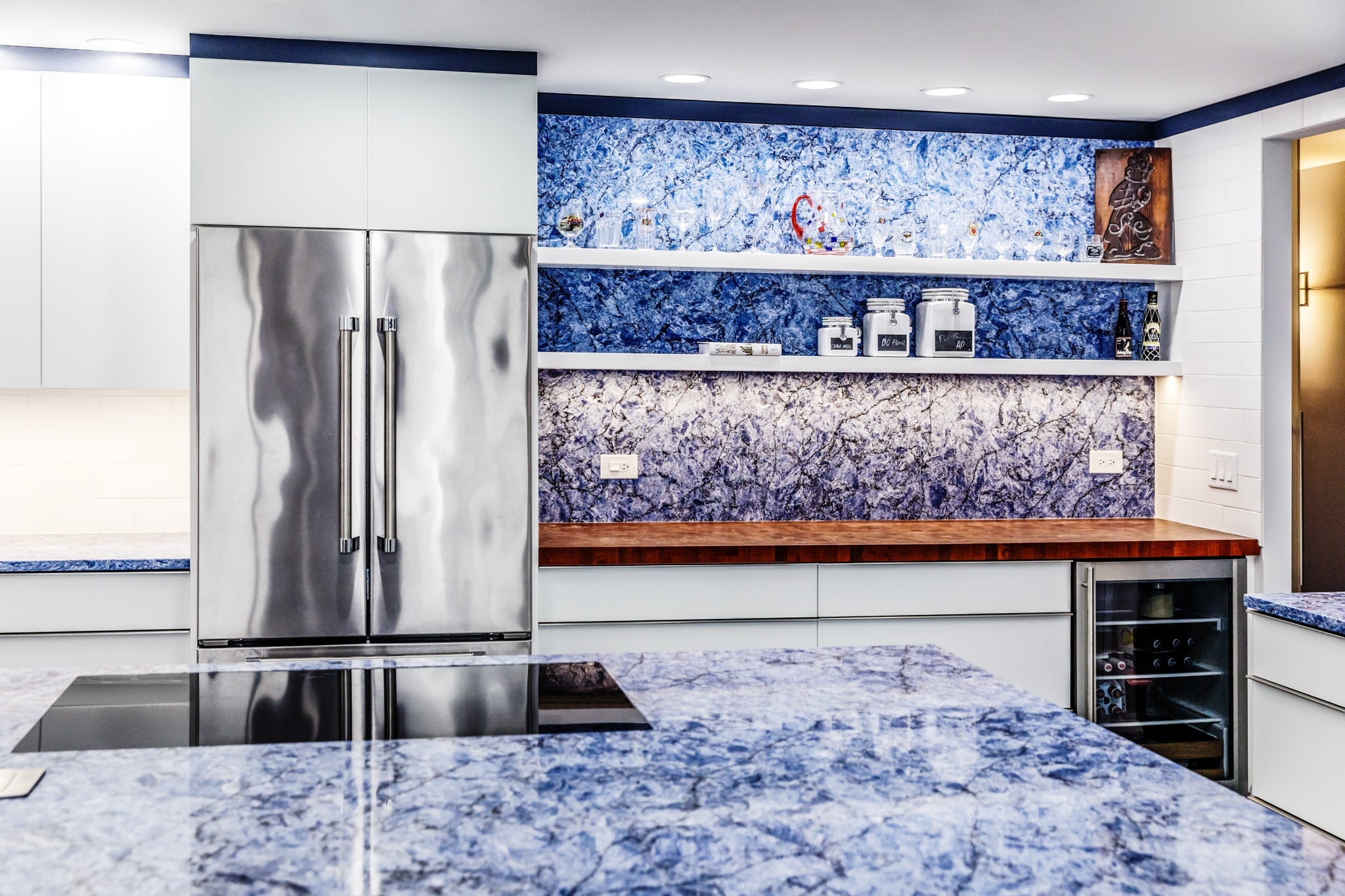 Request Free Quote Schedule Showroom Visit 📞 Call (201) 803-5388From Vicostone’s Thunder Series, Thunder Blue dark veins pop on an ocean-blue granite-look background.